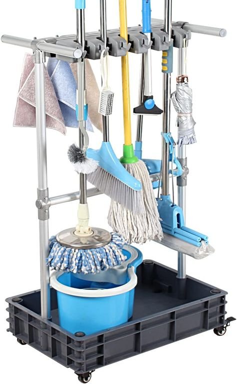 cleaning supply equipment’s for sale in Spain{trash bins, sponges, dish towels, broom, mop}